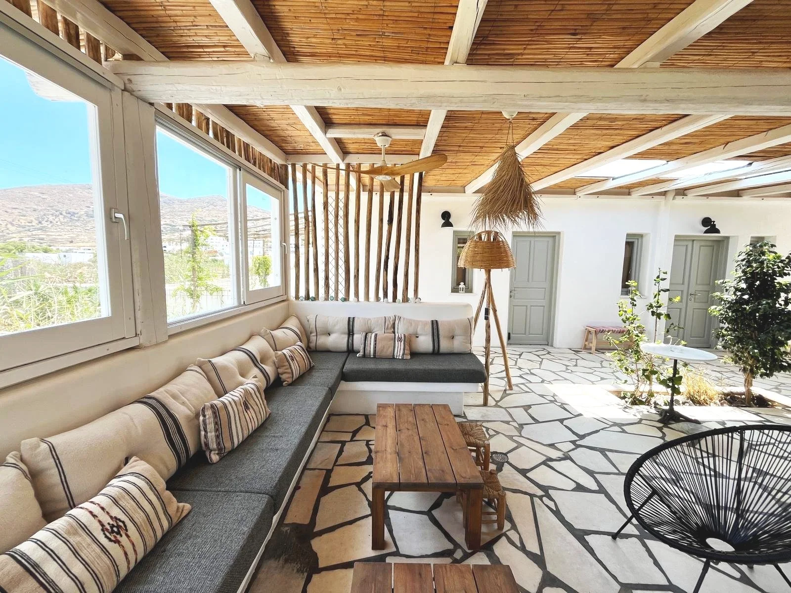 Les maisons se situent sur l’île paradisiaque d’Ios, à 30 minutes en bateau de Santorin.